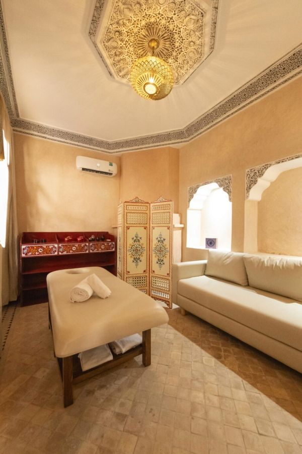 L’espace bien-être du riad comprend un hammam traditionnel, une salle de massage, ainsi qu’un salon de repos aux lignes orientales. Chaque détail a été imaginé pour vous faire vivre une expérience sensorielle complète, fidèle aux grands rituels du Maroc. Notre équipe vous accueille avec douceur et discrétion, dans un cadre intime propice au repos et au ressourcement.